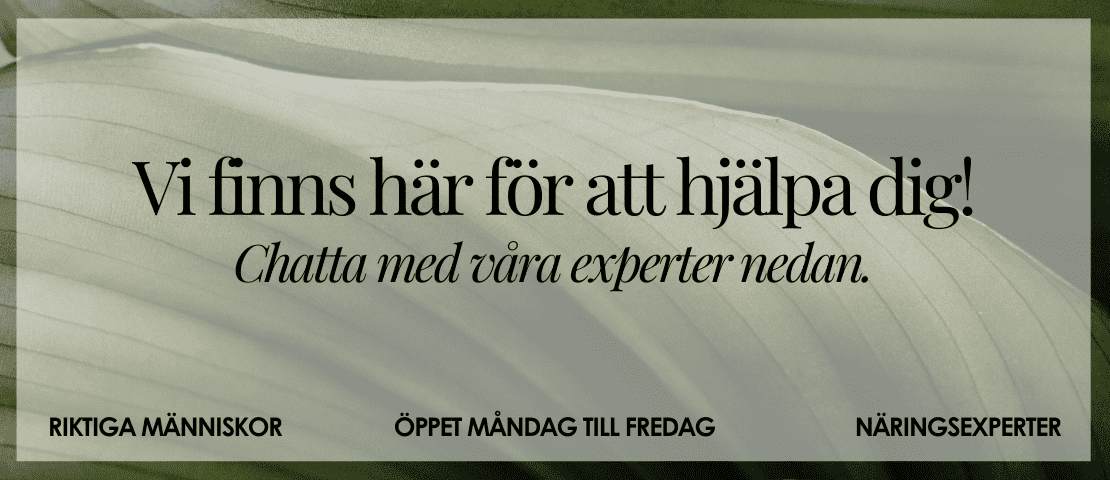 VITAVIVA är din pålitliga webbshop och vi hjälper dig gärna att hitta de kosttillskott som passar dina rutiner och önskemål bäst via vår onlinechatt där vi finns tillgängliga alla vardagar från kl. 9-17.